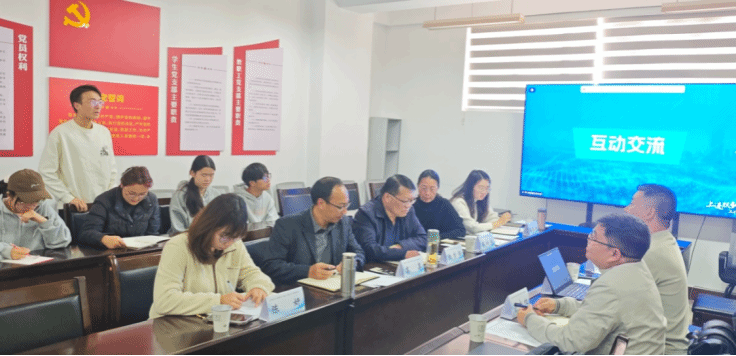 接下来,双方进入互动交流环节。彭艳昆总经理详细介绍了上进双创工作室的建设规划、运营流程及校企合作成效。他围绕工作室在人才培养、实践实训、学科竞赛等方面的工作安排进行重点阐述,并现场解答师生疑问。针对数学建模、市场调查大赛等重点赛事,彭艳昆就备赛指导、资源支持、能力提升等内容作出细致回应,进一步明确了工作室以赛促学、以赛促练的实施路径,为后续校企协同育人工作深入开展夯实了基础。