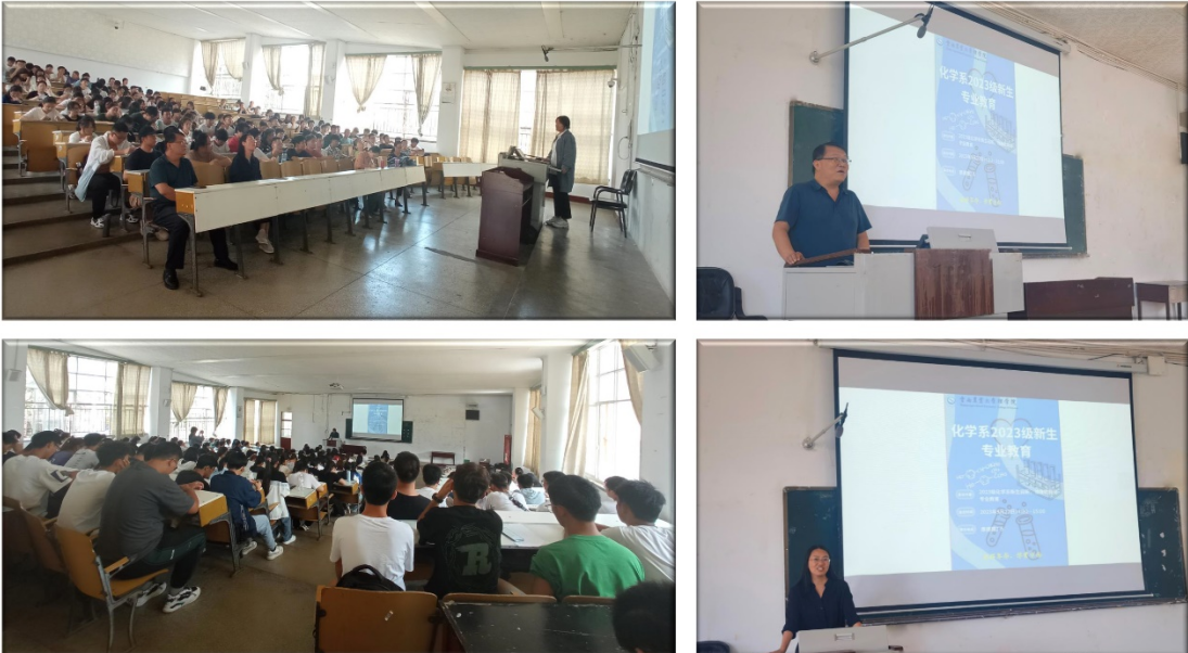 新生入学教育是大学生思想政治教育的重要组成部分,也是推动综合改革、构建育人体系的必要环节。它对于帮助新生坚定理想信念、牢记初心使命、树立远大志向、培养家国情怀、快速适应环境、明确学习目标、合理规划大学生活具有重要的指导作用。为了做好2023级新生入学教育工作,化学系全体教师在学院高度重视和大力支持下,于2023年9月22日成功举办了2023级新生入学专业教育会议。会议由应用化学专业负责人袁文娟主持,学院领导陆自强院长、秦向东副院长出席会议,全体新生、化学系主任、专业负责人、学业导师参加。