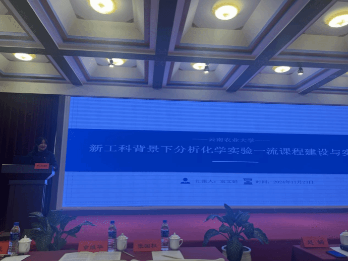 与会专家就如何编写既符合时代需求又具前瞻性的农林特色教材进行了深入研讨,强调了教材内容的实用性与创新性,提出了构建新形态数字化教材体系的策略;在大会汇报环节,袁文娟老师以“新工科背景下分析化学实验一流课程建设与实践”为题进行了交流汇报。分析化学实验课程作为化学类专业教学体系中必要组成部分,是体现专业特色和优势的重要抓手,结合新工科改革,优化课程内容、创新教学方法、实施项目式学习等,提升学生的实践能力和创新能力,构建一流的分析化学实验课程体系,为分析化学实验一流课程的建设提供了思路与借鉴。