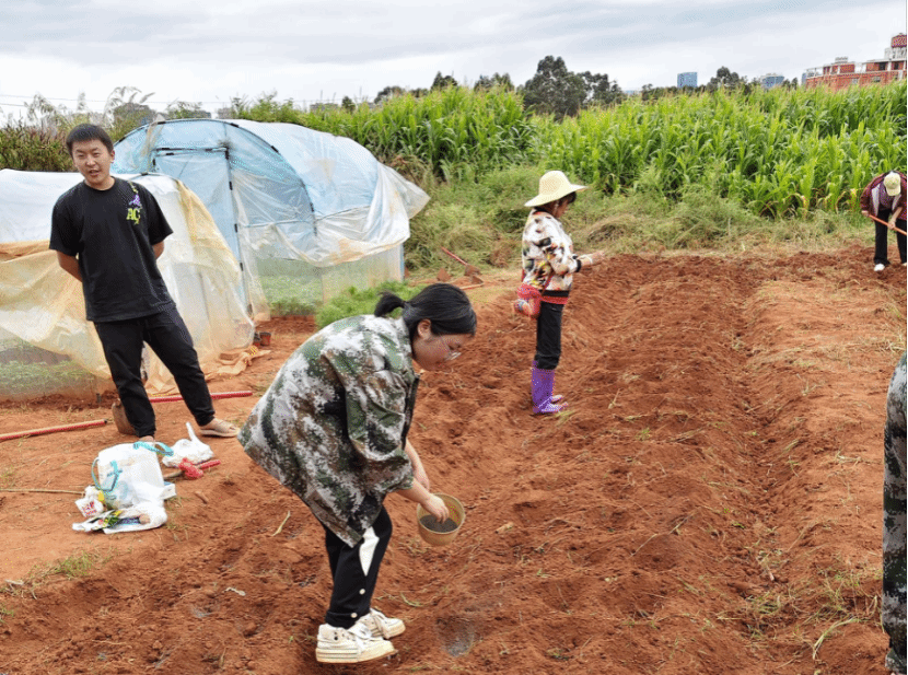 活动开始,在班主任范青飞老师的指导下,学生认真细致地翻耕土地,确保土壤疏松适宜,为后续种植打下良好基础。随后小心翼翼地将一颗颗蔬菜种子植入土中,每一个环节都一丝不苟,充分展现出对劳动的尊重与热忱。此次耕读劳动教育活动特邀植保学院的苏发武老师及其团队成员亲临现场,为同学们讲解土地整理技巧与应季蔬菜种植要点。老师从土壤改良、病虫害防治到蔬菜生长周期管理,全方位、多角度地传授农业知识,同学们围站一旁,全神贯注地聆听,不时提出问题,现场学习氛围浓厚。在老师的专业指导下,同学们不仅学会了如何科学种植蔬菜,更深刻领悟到农业生产的复杂性与专业性,激发起探索农业科学的浓厚兴趣。活动落幕时,同学们虽满身尘土,但脸上洋溢着满足与自豪。他们纷纷表示,通过亲手翻地、种菜,深切体会到"粒粒皆辛苦"的真切含义,往后定将秉持劳动精神,深耕专业学习,以知农爱农情怀,投身强国复兴伟业。