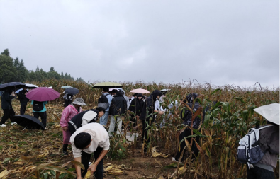 田间劳作间隙,基地博士教师结合当季作物生长数据,现场讲解稻米品质形成机理与玉米绿色防控技术,并围绕“把论文写在大地上”分享科研历程:如何以田间问题为导向,让实验室成果在泥土里生根。深入浅出的专题交流,使学生在禾香与雨声中体悟“知农爱农”的学科使命。