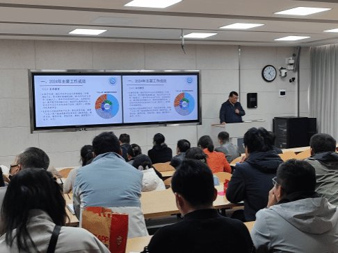 陆自强院长在会上,回顾了过去一年取得的工作成绩。他指出,学院以审核评估整改推动教学发展,积极开展专业综合评价与一流专业建设,在教学改革项目立项、课程建设、教学比赛获奖、教材建设等多个方面均取得丰硕成果。新增多个科研项目与合同经费,积极申报多个硕士专业学位点,发表多篇高质量论文,师资结构进一步优化,学生专业竞赛获奖等方面成绩优异,完成多项实验室设备改造与购置工作,实验室条件得到显著改善。他指出,新一年学院将持续发挥政治核心作用,围绕“十四五”规划与高质量发展目标,深化本科教育改革,持续推进基础课分层教学,加强专业课程建设,优化科研与学科建设资源配置,构建有组织的科研体系,加大领军人才引进力度,强化实践教学,推进产教融合,科教融汇,不断提升对外交流水平。他强调,新一年学院将重点推进绩效改革,完善压力传导机制,实施团队绩效考核,以此激发全体教师的积极性与创造力,推动学院各项事业迈向新台阶。