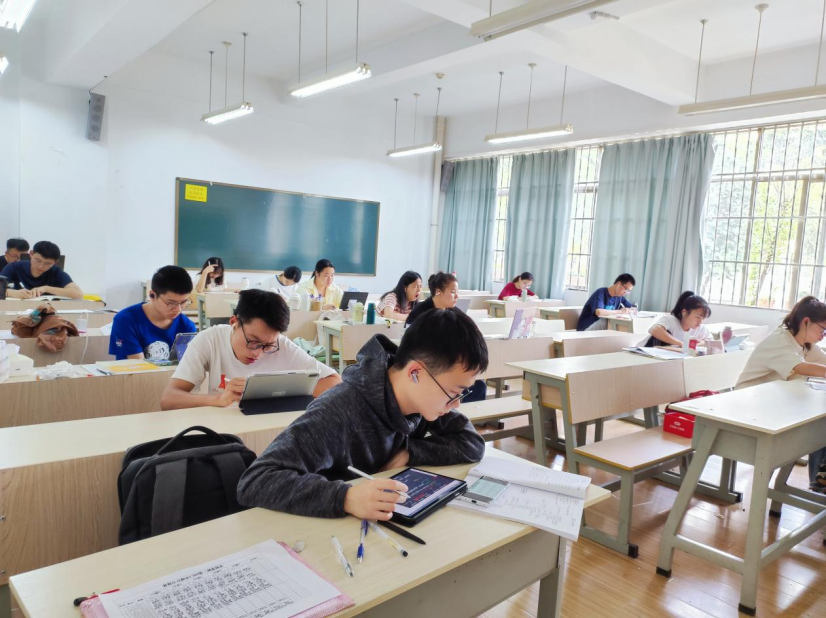 把心交给学识的洪流,跳跃在思想的浪花上,让智慧照亮前行的道路。炎炎夏日,窗外蝉鸣鸟啼,在学院为20级有备考需求的同学专设的备考复习教室里,却有着难得的宁静致远。