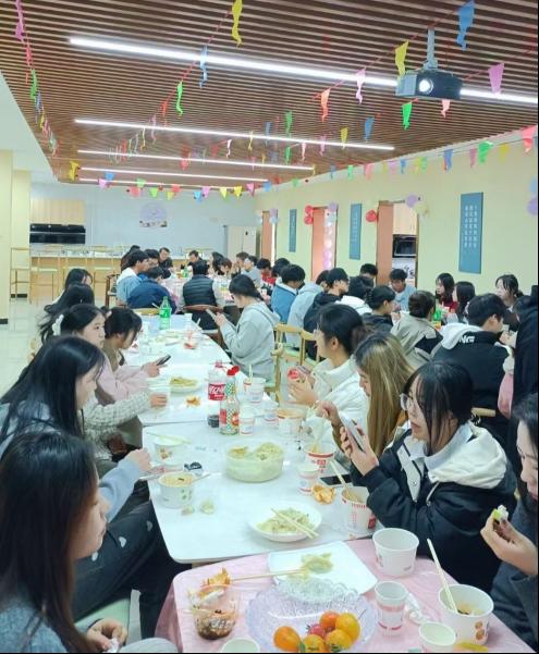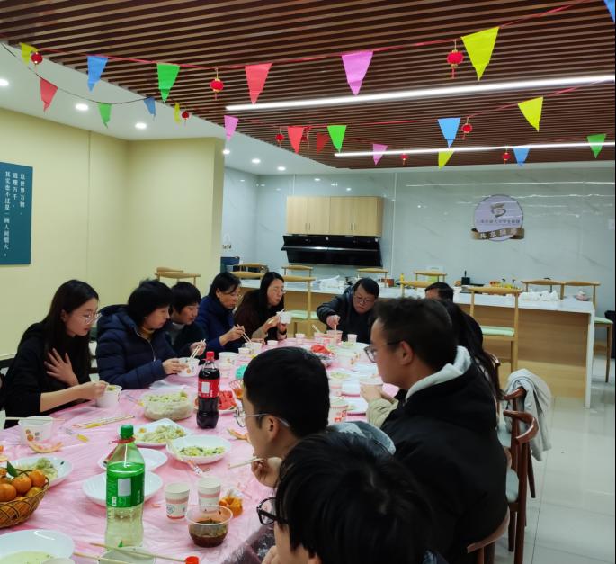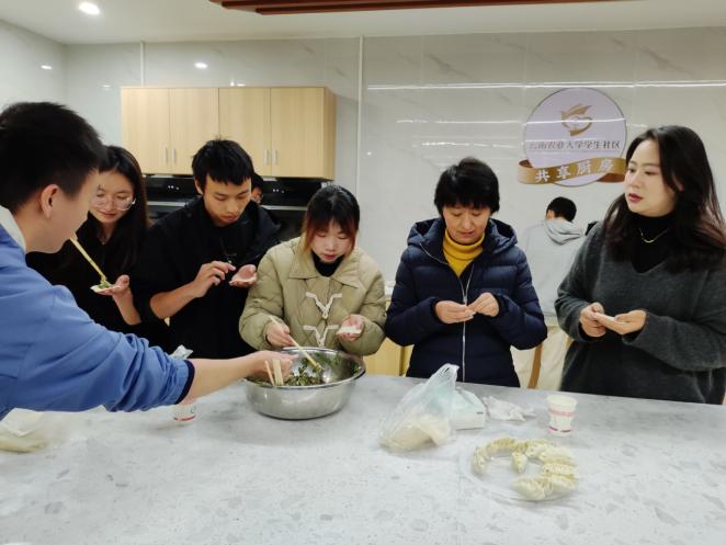 经过近两个小时的劳动实践,一盘盘“丰富多彩”的饺子热气腾腾出锅,有的敦实厚重,有的别致精巧,有的晶莹剔透,香气四溢。徐副书记与不雅视频 师生围坐在一起,共同品尝劳动成果,感受着云农大家庭的温暖。