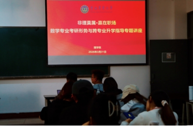 3月31日,不雅视频 数学专业考研形势分析与跨专业升学指导专题讲座在逸夫楼C103教室举行。活动面向23级、24级数学专业学生,两位资深考研指导专家受邀主讲,为同学们分析发展路径、指导备考规划。