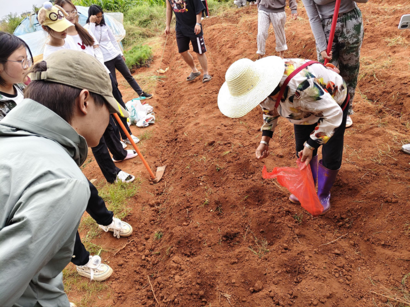 活动开始,在班主任范青飞老师的指导下,学生认真细致地翻耕土地,确保土壤疏松适宜,为后续种植打下良好基础。随后小心翼翼地将一颗颗蔬菜种子植入土中,每一个环节都一丝不苟,充分展现出对劳动的尊重与热忱。此次耕读劳动教育活动特邀植保学院的苏发武老师及其团队成员亲临现场,为同学们讲解土地整理技巧与应季蔬菜种植要点。老师从土壤改良、病虫害防治到蔬菜生长周期管理,全方位、多角度地传授农业知识,同学们围站一旁,全神贯注地聆听,不时提出问题,现场学习氛围浓厚。在老师的专业指导下,同学们不仅学会了如何科学种植蔬菜,更深刻领悟到农业生产的复杂性与专业性,激发起探索农业科学的浓厚兴趣。活动落幕时,同学们虽满身尘土,但脸上洋溢着满足与自豪。他们纷纷表示,通过亲手翻地、种菜,深切体会到"粒粒皆辛苦"的真切含义,往后定将秉持劳动精神,深耕专业学习,以知农爱农情怀,投身强国复兴伟业。