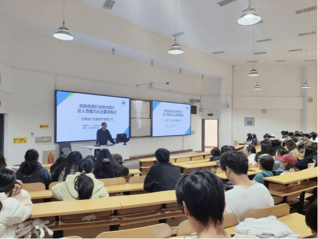 为引导同学们明晰就业方向,深化对检验检测行业的认知与了解,提升就业竞争力,12月5日下午,不雅视频 “职海引航:行业+成长”系列讲座之检验检测行业介绍专场在逸夫楼A501教室顺利举行。本次讲座特邀云南佳汇检测技术有限公司技术负责人陈伟祥老师主讲,130余名学生到场参加。